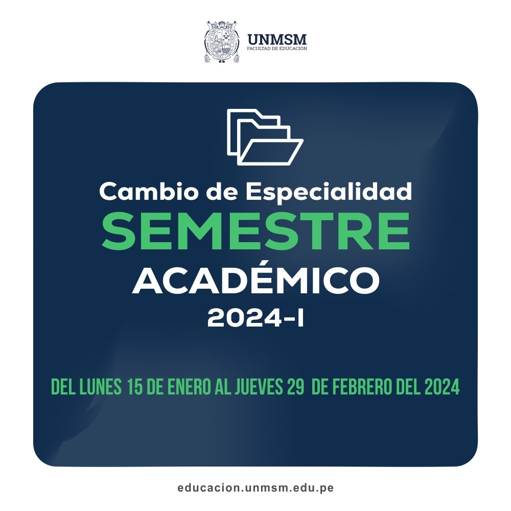 Se comunica a los estudiantes de la Escuela Profesional de Educación que del lunes 15 de enero al jueves 29 de febrero de 2024 se podrá enviar las solicitudes de cambio de especialidad.