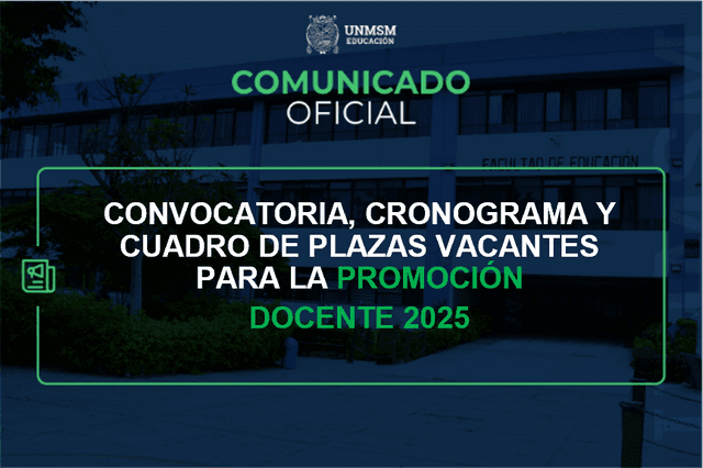Convocatoria, Cronograma y Cuadro de Plazas Vacantes para la Promoción Docente 2025 de la UNMSM
